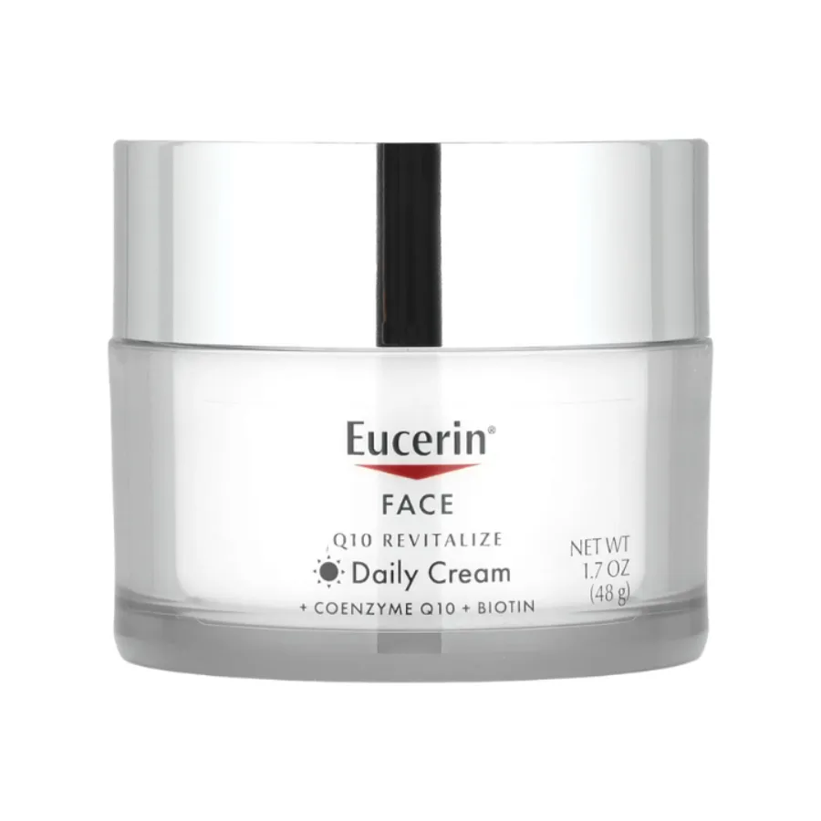 كريم الوجه اليومي من Eucerin Q10 Revitalize يحتوي على أنزيم Q10 والبيوتين، وهو مصمم لتقليل ظهور الخطوط الدقيقة والتجاعيد، مع تعزيز مرونة البشرة وحيويتها.
