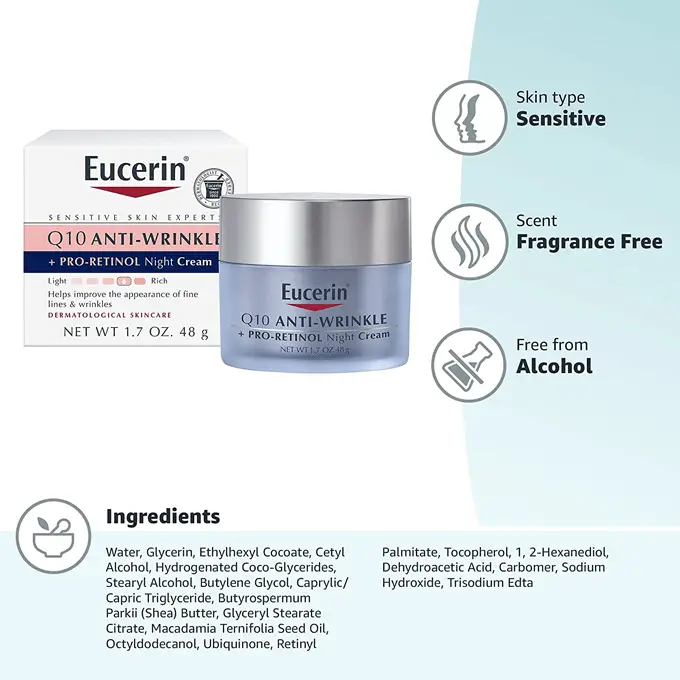 كريم ليلي غني يحتوي على إنزيم Q10 وبرو-ريتينول، مصمم لمقاومة علامات التقدم في السن وتحفيز تجديد خلايا البشرة أثناء الليل.