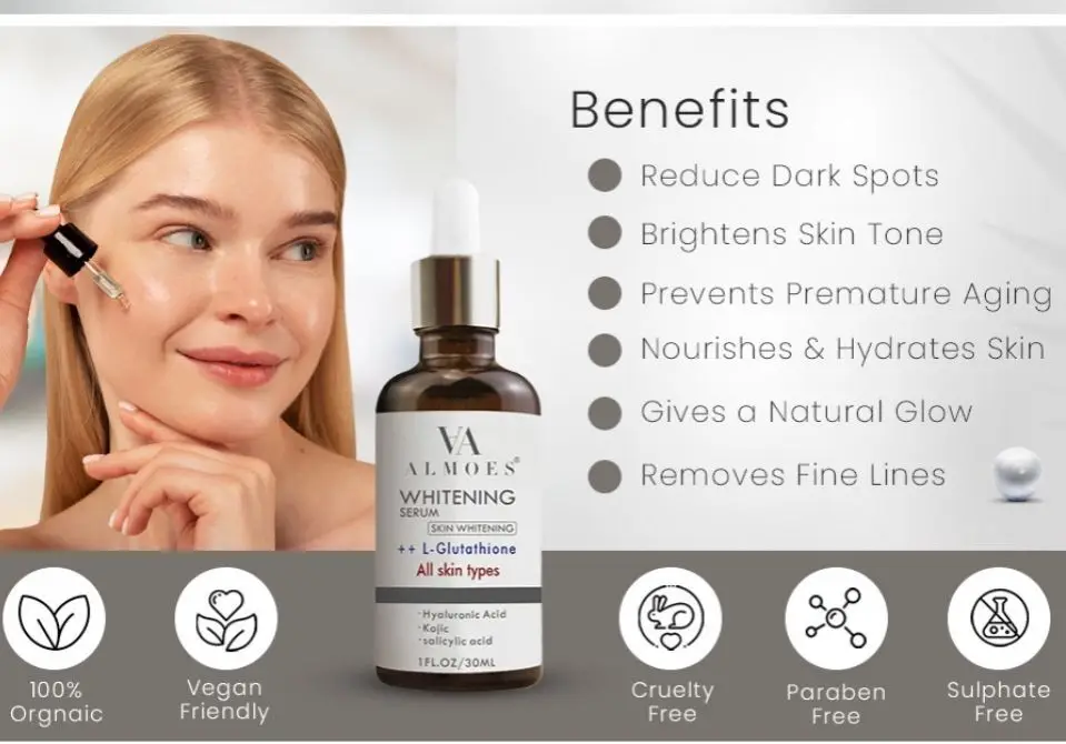 سيروم تفتيح البشرة يحتوي على مكونات فعالة مثل L-Glutathione، حمض الهيالورونيك، حمض الساليسيليك، والكوچيك. يساعد في توحيد لون البشرة، تقليل التصبغات، وترطيب البشرة، وهو مناسب لجميع أنواع البشرة.