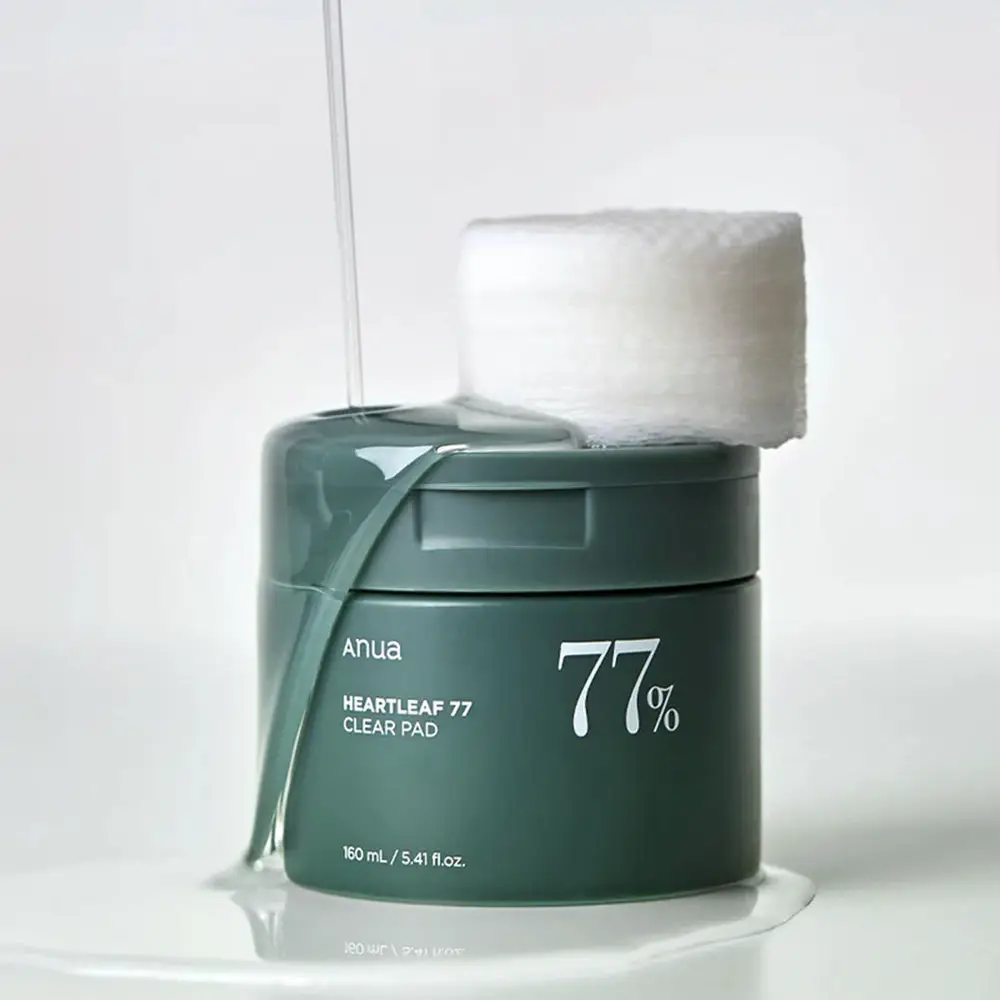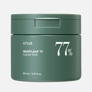 منتج Anua Heartleaf 77 Clear Pad هو عبارة عن وسادات قطنية مبللة تحتوي على 77% من مستخلص نبتة الهارتليف (Heartleaf)، المعروفة بخصائصها المهدئة والمضادة للالتهابات.
