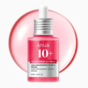 سيروم Anua Niacinamide 10 + TXA 4 هو سيروم مركز يحتوي على 10% من النياسيناميد (فيتامين B3) و4% من حمض الترانيكساميك (TXA)، ويعمل على تفتيح البشرة وتوحيد لونها بفعالية، كما يقلل من التصبغات والبقع الداكنة، ويعزز إشراقة البشرة ونضارتها.
