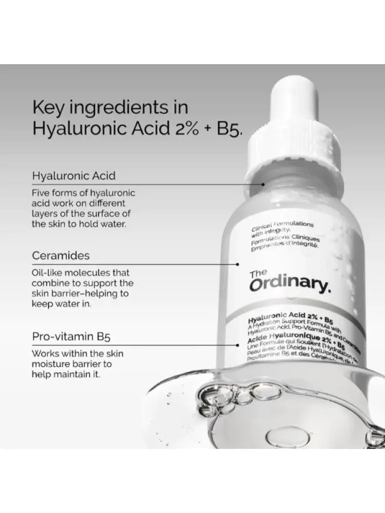 يحتوي على تركيز 2% من حمض الهيالورونيك في ثلاث أوزان جزيئية مختلفة للوصول إلى طبقات البشرة المتعددة، مع فيتامين B5 الذي يدعم ترميم البشرة وتعزيز نعومتها.