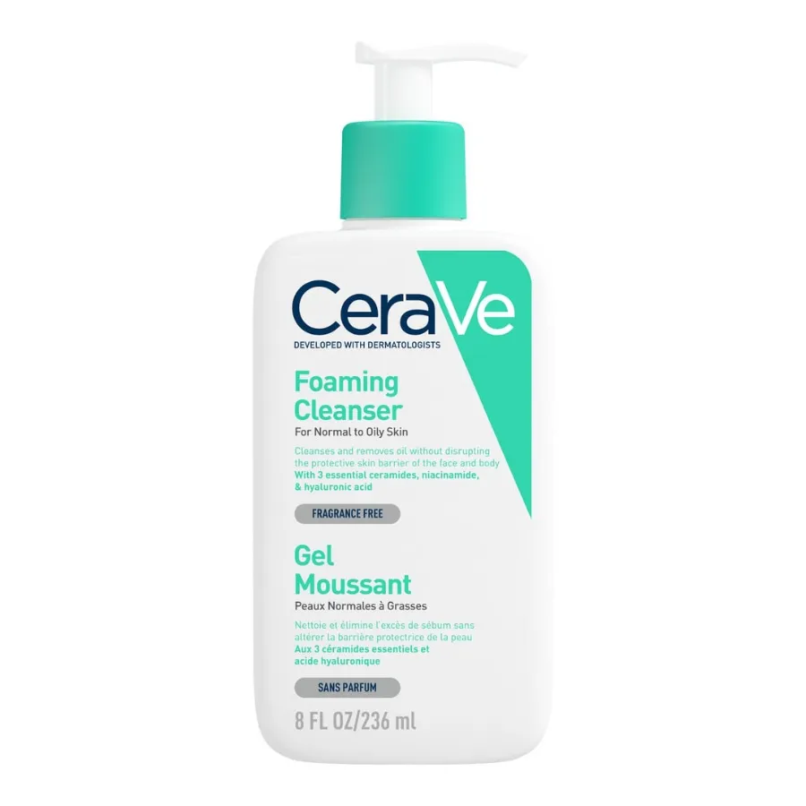 - CeraVe رغوي منظف الوجه يتميز سيراميد ، حمض الهيالورونيك و نياكيناميدي للمساعدة في استعادة حاجز الجلد وتجذب الترطيب وتهدئة البشرة.