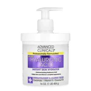 كريم حمض الهيالورونيك Advanced Clinicals, Hyaluronic Acid مرطب البشرة الفوري الغني بحمض الهيالورونيك المُقدم من Advanced Clinicals عبارة عن تركيبة مصممة لاستعادة نضارة البشرة المترهلة والحفاظ على الترطيب للتمتع بمظهر أكثر شبابًا ونضارة. حمض الهيالورونيك عبارة عن مرطب، وهي كلمة رائعة للتعبير عن مكون يساعد في الحفاظ على الترطيب. ومع ذلك، فإن الكريم المرطب من إنتاجنا يحقق ترطيبًا يعادل 1000 مرة من وزنه! تتمتع هذه المكونات المفيدة، المعززة بزيت لسان الثور والسكوالين وفيتامين هـ، بخصائص مجددة للحيوية تحول البشرة بالفعل. يزيد من قدرة البشرة على الاحتفاظ بالماء لتقليل ظهور التجاعيد والخطوط الرفيعة والتمتع بلون بشرة خالٍ من العيوب.