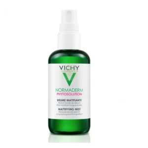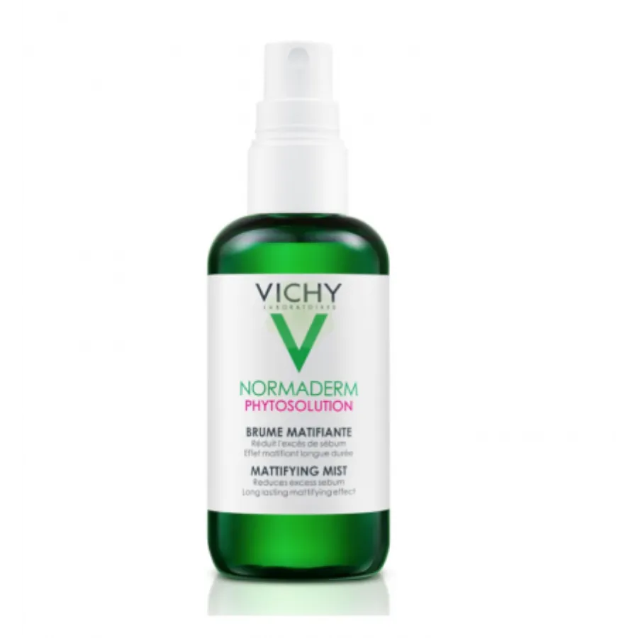 بخاخ فيشي نورماديرم فيتوسوليوشن المطفأ يزيل الدهون الزائدة ويمنح البشرة تأثيرًا فوريًا مطفأً (٨ ساعات من النضارة والإشراق). لبشرة أكثر نضارة وإشراقًا، محمية من العوامل الخارجية الضارة كالتلوث.