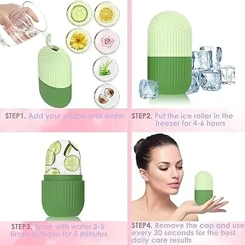 بإمكانك استخدام القالب كمدلك للوجه بعد وضعه في الفريزر في الصباح أو في أيّ وقت من اليوم، مع إضافة المكونات الطبيعية للحصول على أفضل النتائج من الشاي الأخضر للالتهاب، وماء الخيار لإزالة الانتفاخات وحليب جوز الهند لمكافحة الشيخوخة..