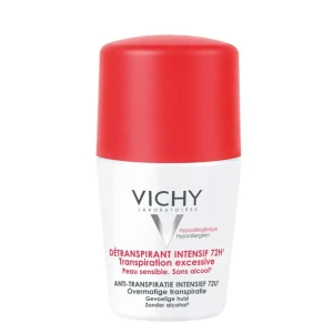 مزيل العرق فيشي الذي يدوم 72 ساعة يمنحك شعورًا بالانتعاش حتى في ظل التوتر. فهو يُعيد التعرق إلى طبيعته ويحد من خطر التهيج. بفضل ملامسته اللطيفة للبشرة، يحترم هذا المنتج المُصمم بدون البارابين جميع أنواع البشرة، بما في ذلك البشرة الأكثر حساسية. فهو يجمع بين الترطيب والتلطيف لتحقيق أقصى قدر من الرفاهية.