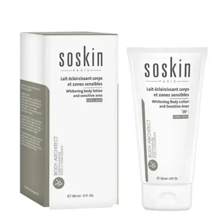 يتميز كريم سوسكن لتفتيح المناطق الحساسة soskin whitening body lotion بتركيبة مميزة تحارب البقع الداكنة والتصبغات في البشرة وتعيد للجلد ليونته ونعومته كما يعمل soskin كريم تفتيح البشرة whitening body lotion على ترطيب المناطق الحساسة لتظهر بشرتك مشرقة ونضرة . يتميز لوشن سوسكن للتفتيح بقوام كريمي خفيف يتغلغل على الفور ليفتح البقع والتصبغات ويحد من ظهورها من جديد على سطح البشرة. لوشن تفتيح البشرة من سوسكن غير مناسب للحامل والمرضع ، كما يوضع على الجسم فقط ولا يستخدم للوجه، كما أنه مناسب لجميع أنواع البشرة عدا الحساسة والمتهيجة