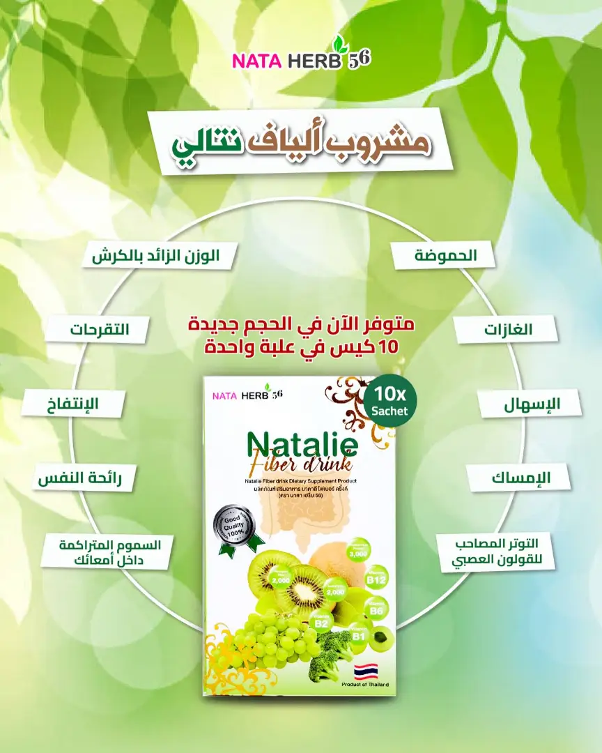 اجعل مشروب الألياف ناتالي من ناتا هيرب رفيقك اليومي لدعم جهازك الهضمي، التخلص من السموم، وتحقيق شعور بالراحة الداخلية والنشاط. خيارك الطبيعي لصحة أفضل من الداخل تنعكس على جمالك الخارجي.