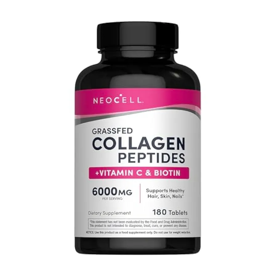 - حبوب الكولاجين: عبوة واحدة من 180 قطعة من أقراص نيو سيل Super Collagen مع فيتامين C والبيوتين، وهو مكمل يدعم البشرة والشعر والأظافر وصحة المفاصل لتعزيز جمالك في غضون (1)