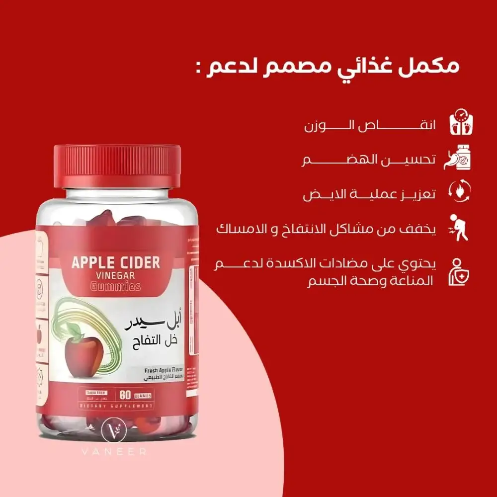 حققي أهدافك مع أبل سيدر خل التفاح، أفضل مكمل غذائي مصمم لدعم إنقاص الوزن، تحسين الهضم، وتعزيز عملية الأيض. تحتوي هذه الحبوب اللذيذة على خلاصة خل التفاح الطبيعي المعروف بقدرته على سد الشهية، تقليل الانتفاخ، وتحفيز حرق الدهون، مما يجعله خيارًا مثاليًا لمن يبحثون عن نمط حياة صحي.